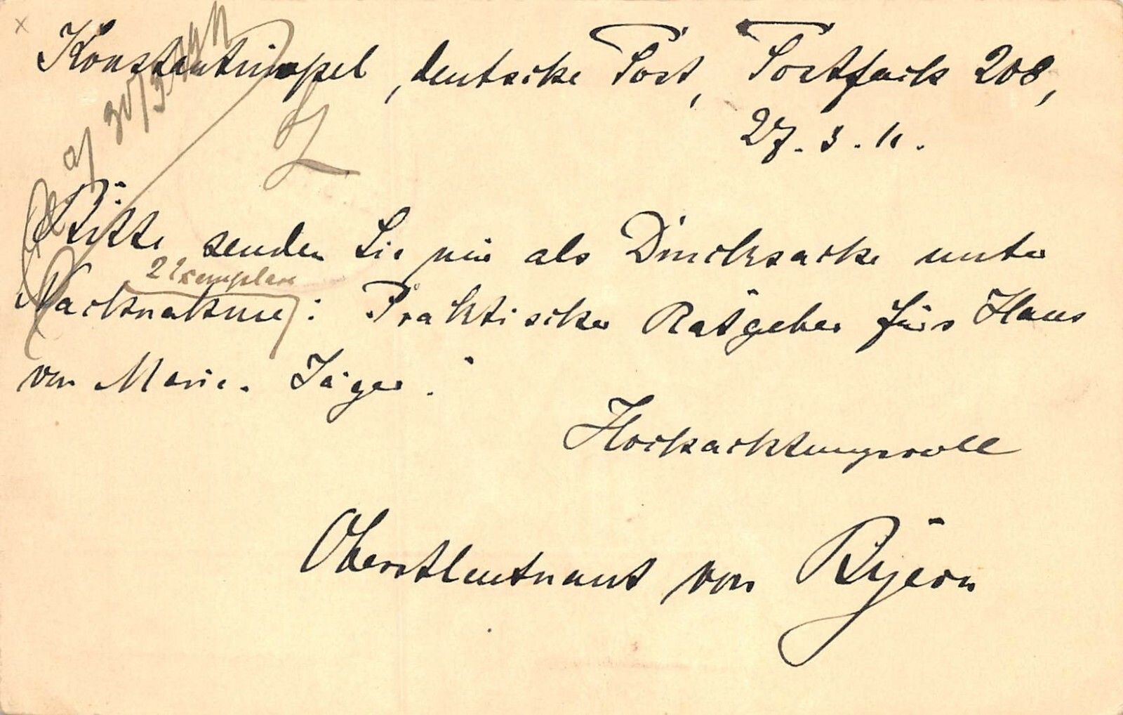 Deutsche Post in der Türkei Postkarte GA gel. CONSTANTINOPEL nach Leipzig 1911