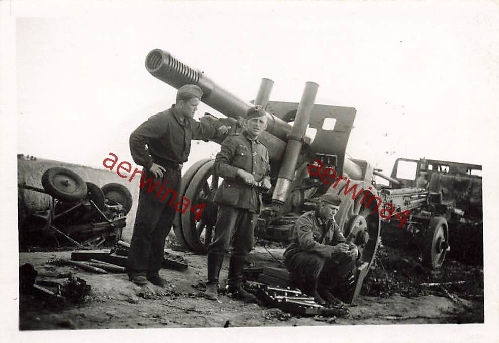 Deutsche Soldaten an russischer Kanonenhaubitze M1937 bei Luzk Ukraine Ost.