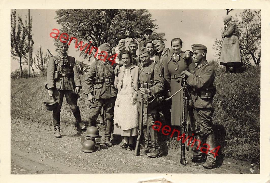 Deutsche Soldaten mit MG 34 und Stahlhelm Jugoslawische Frauen Serbien Balkan