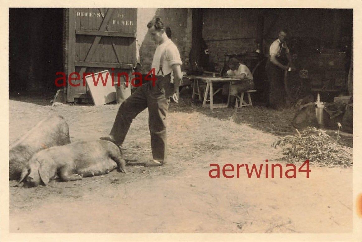 Deutscher Soldat mit Schweinen Bauernhof Richemont Frankreich