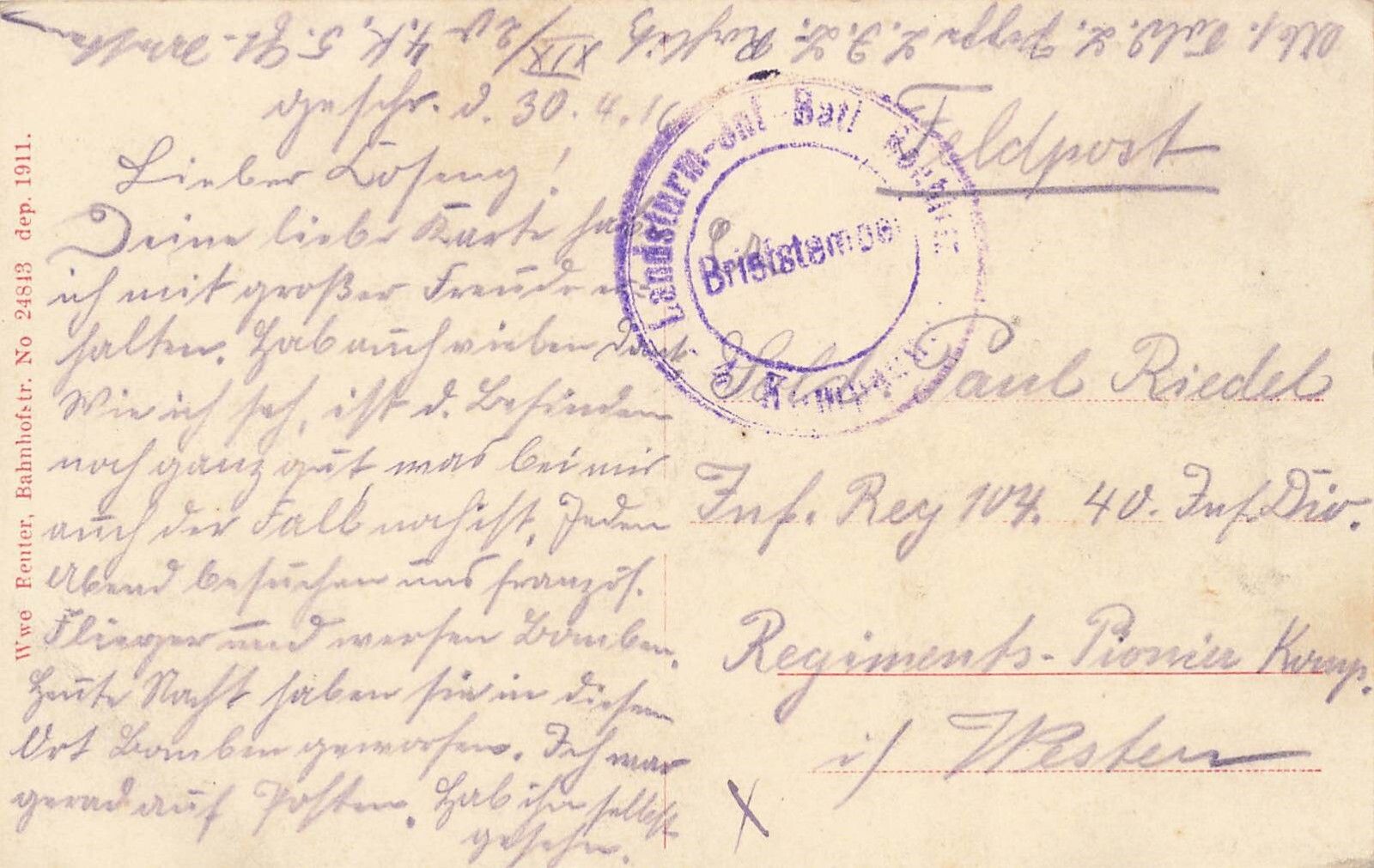 Original Postkarte Maße 9 x 14 cm Rückseite: gelaufen 1916 Zustand: gute Erhaltung