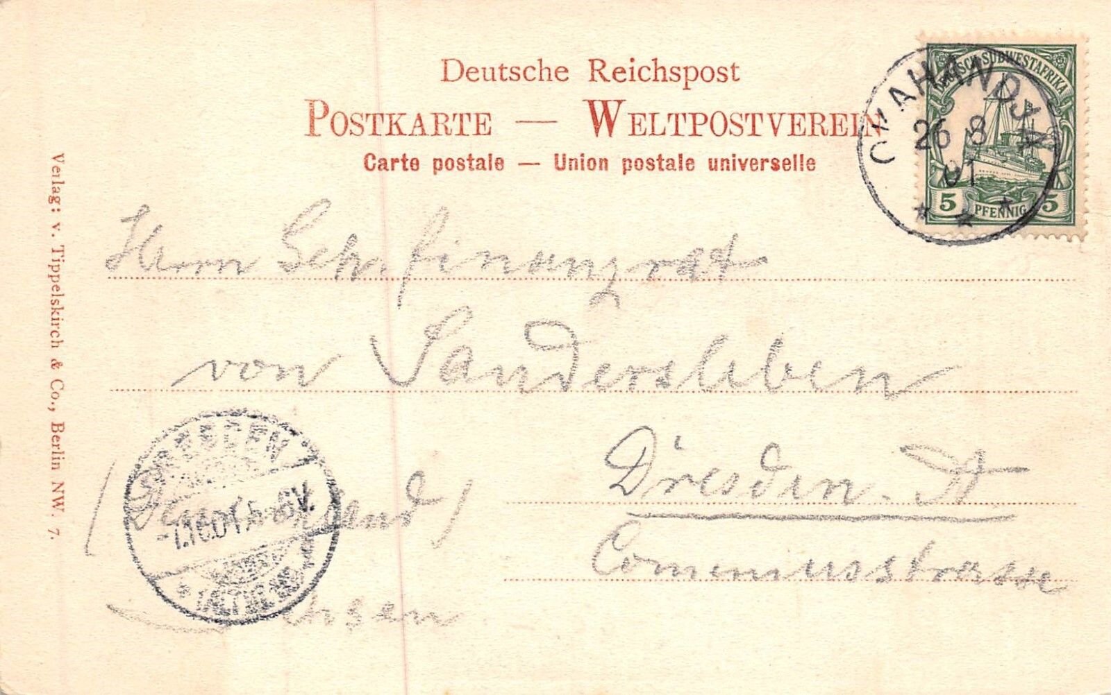 DSWA Deutsch-Südwest-Afrika AK Eisenbahn-Station Swakopmund gelaufen Okahandja 1901