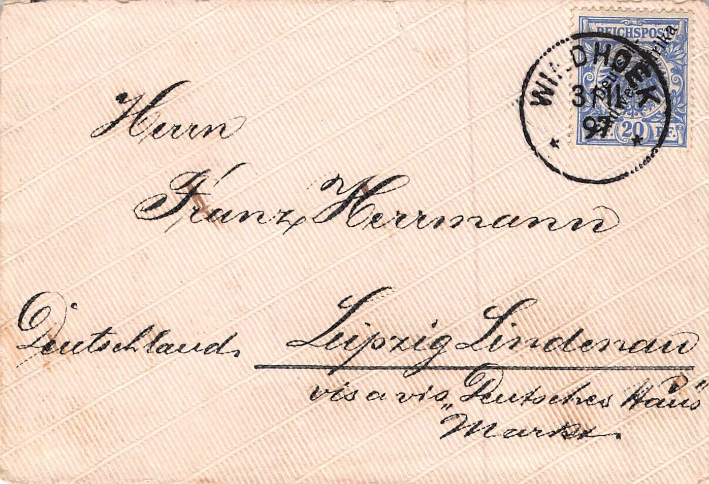 Original Postkarte Maße 12 x 8 cm DSWA Deutsch-Südwest-Afrika Brief 20 Pfennig Adler-Ausgabe WINDHOEK 1897 Zustand: gebraucht