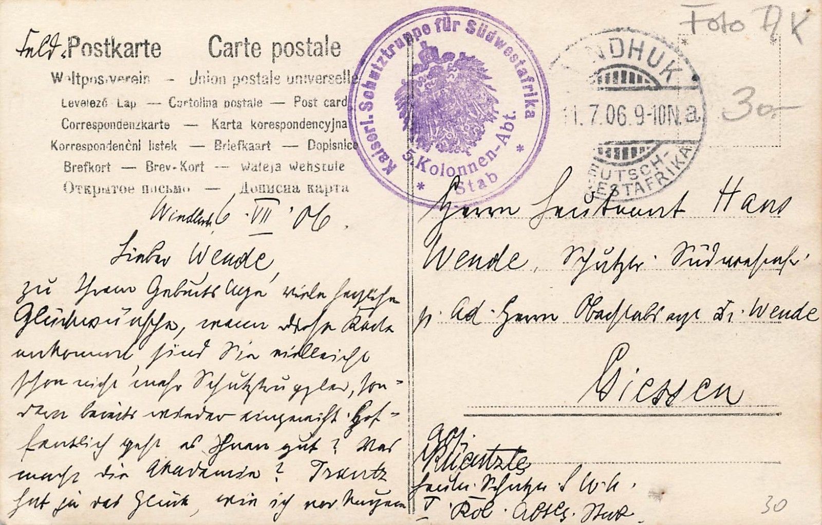 DSWA Deutsch-Südwest-Afrika Foto-AK einheimische Kinder gel. WINDHUK 1906