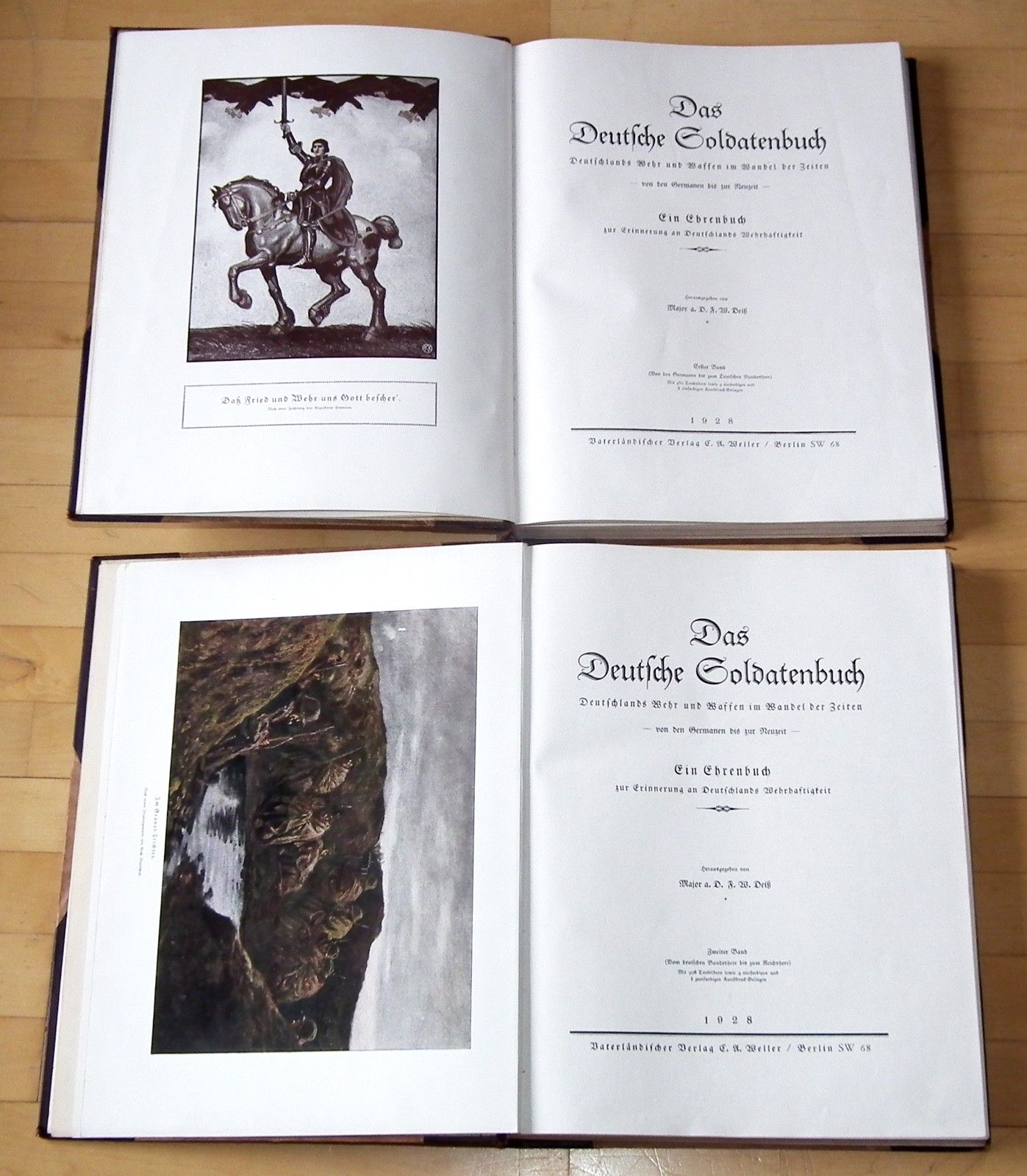 Original Deiß " Das Deutsche Soldatenbuch " 2 Bände Komplett 1928 Vaterländischer Verlag Weller / Berlin Zustand: leicht gebraucht , kleine Riße