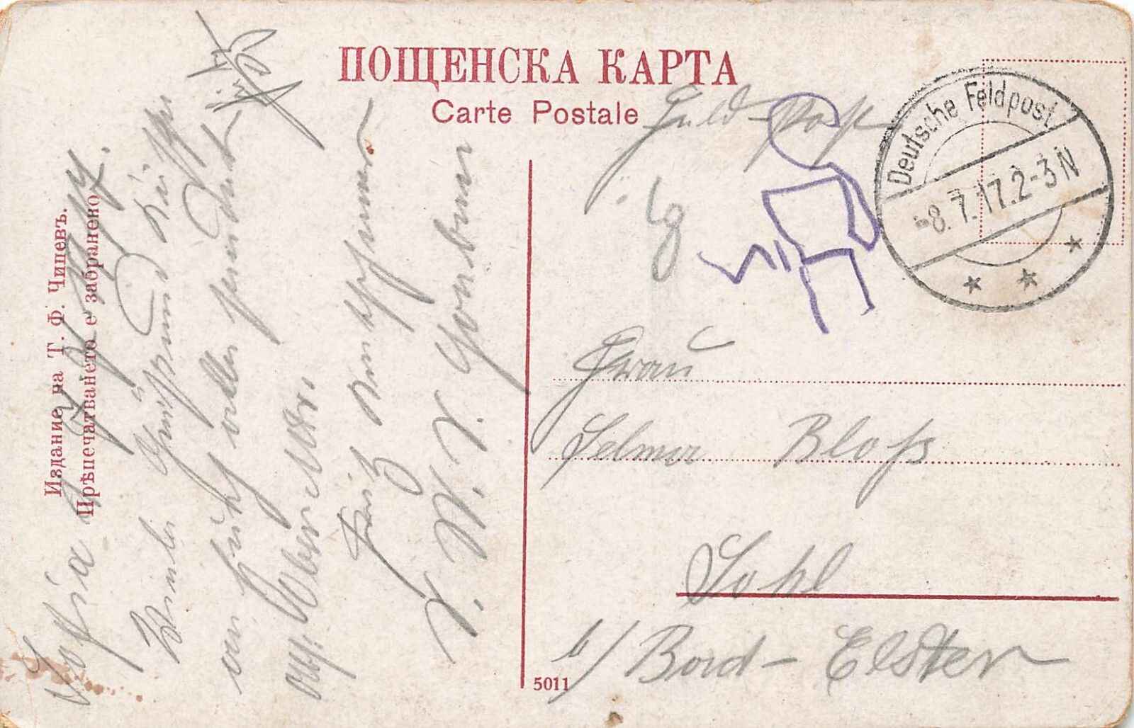 Original Postkarte Maße 9 x 14 cm Rückseite: gelaufen 1917 Zustand: leichte Gebrauchsspuren
