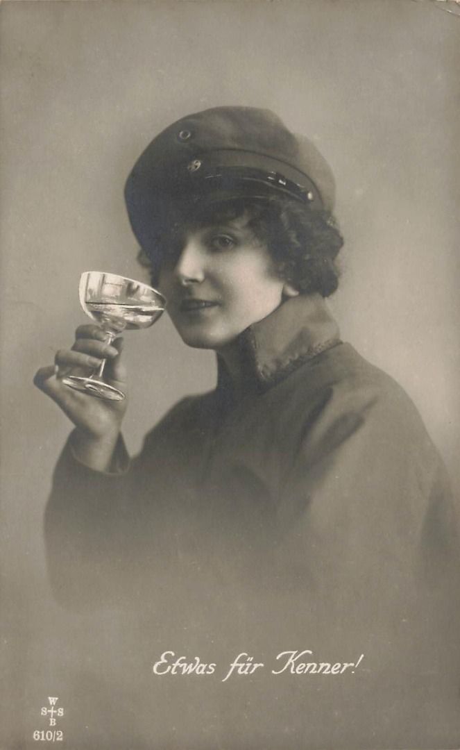 AK 1.WK Frau Portrait Sektglas Etwas für Kenner ungelaufen Patriotika Postkarte