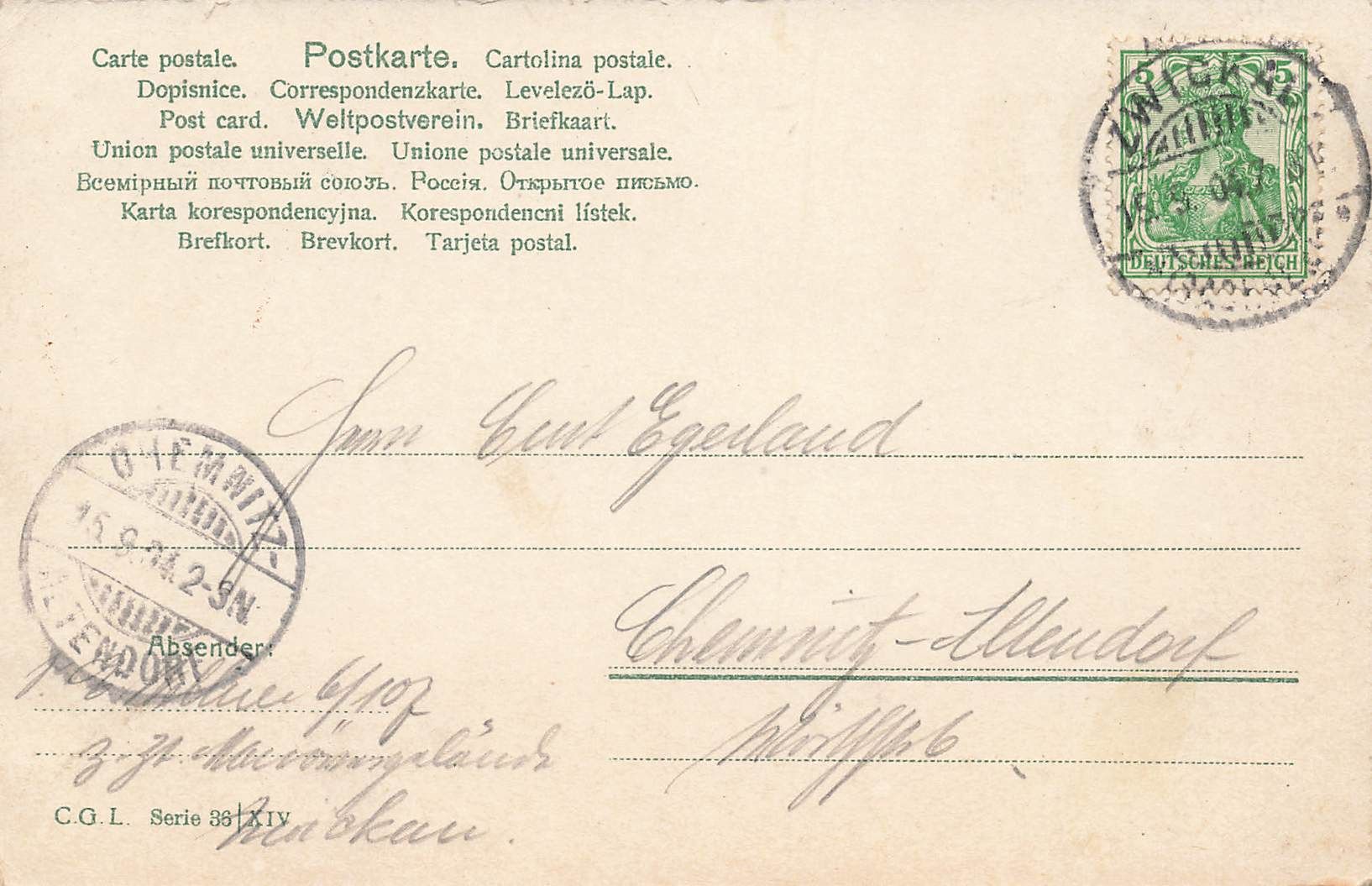 Rückseite: gelaufen 1904