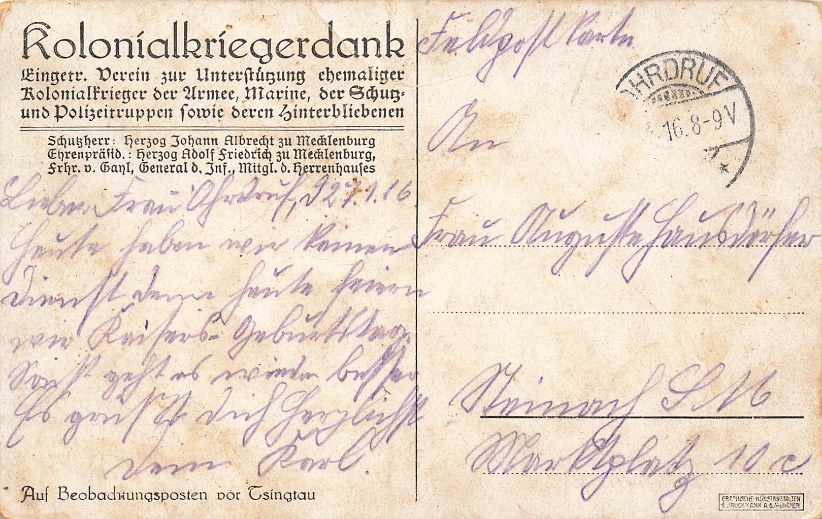 Rückseite: gelaufen 1916