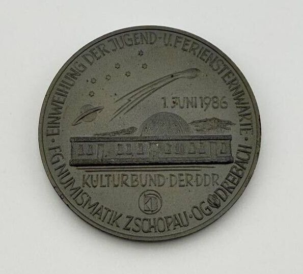 DDR Medaille Einweihung der Sternwarte, 600 Jahre Drebach, Numismatik Zschopau Original DDR Medaille Durchmesser: ca. 60mm Zustand: gute Erhaltung, leicht befleckt (siehe Bilder)