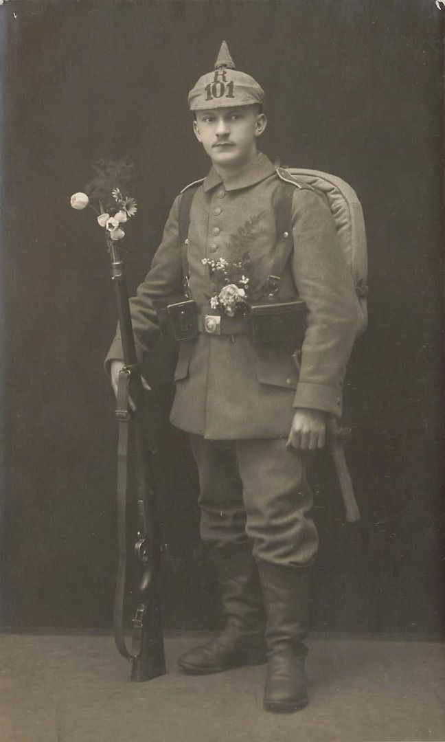 Foto AK 1.WK Portrait deutscher Soldat Pickelhaube R 101 Zittau Sachsen