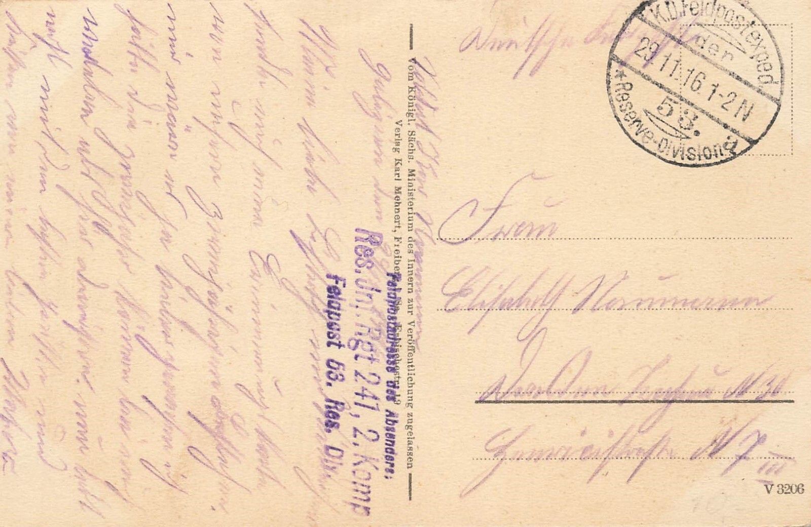Rückseite: gelaufen 1916