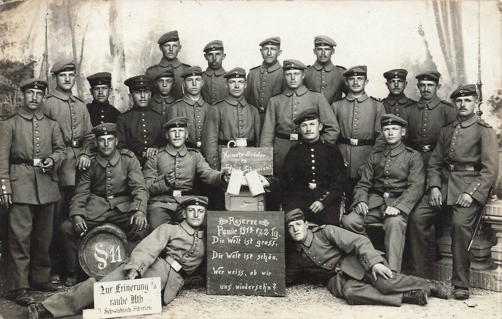 Foto-AK 1.WK Deutsche Soldaten Schulterklappe 122 Münsingen Schwäbisch Sibirien