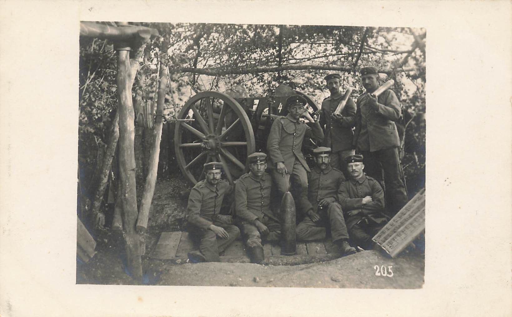 Foto-AK 1.WK Soldaten an Geschütz Stellung beim Nachladen Granaten