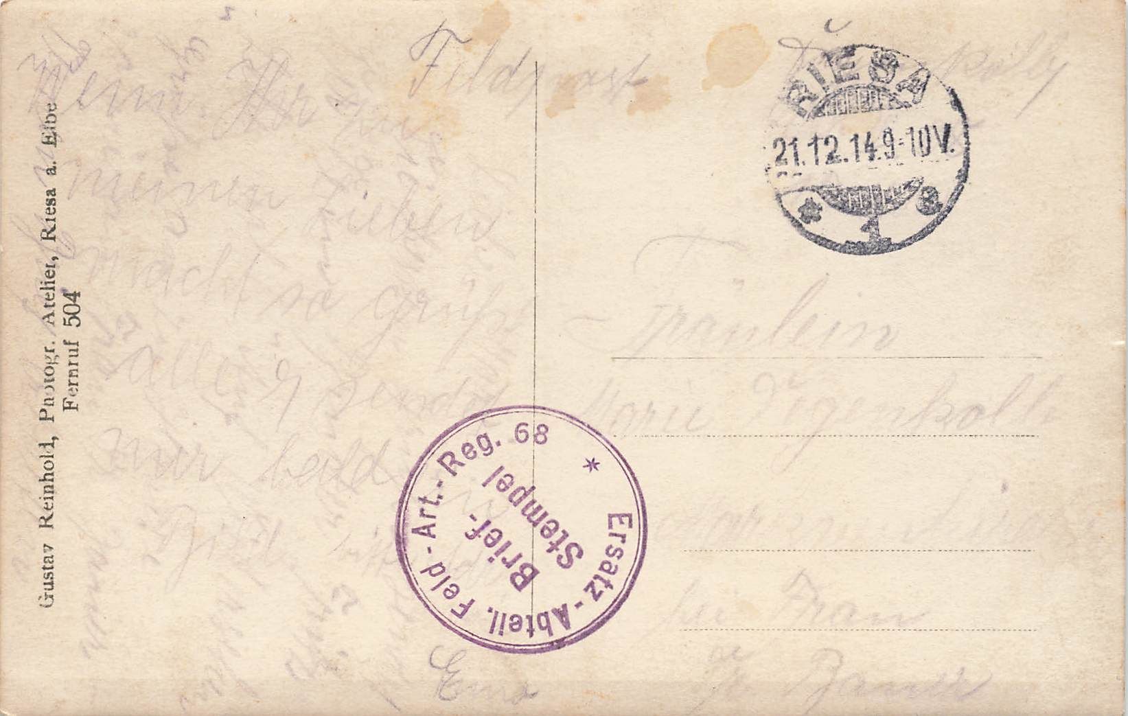 Original Postkarte Maße 14 x 9 cm Rückseite: beschrieben 1914 Zustand: Gebraucht
