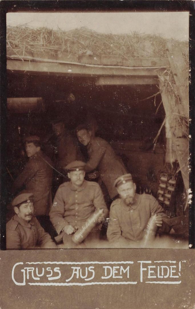 Fotokarte 1.WK bayerische Soldaten mit bayerischen Liebesgaben Granaten