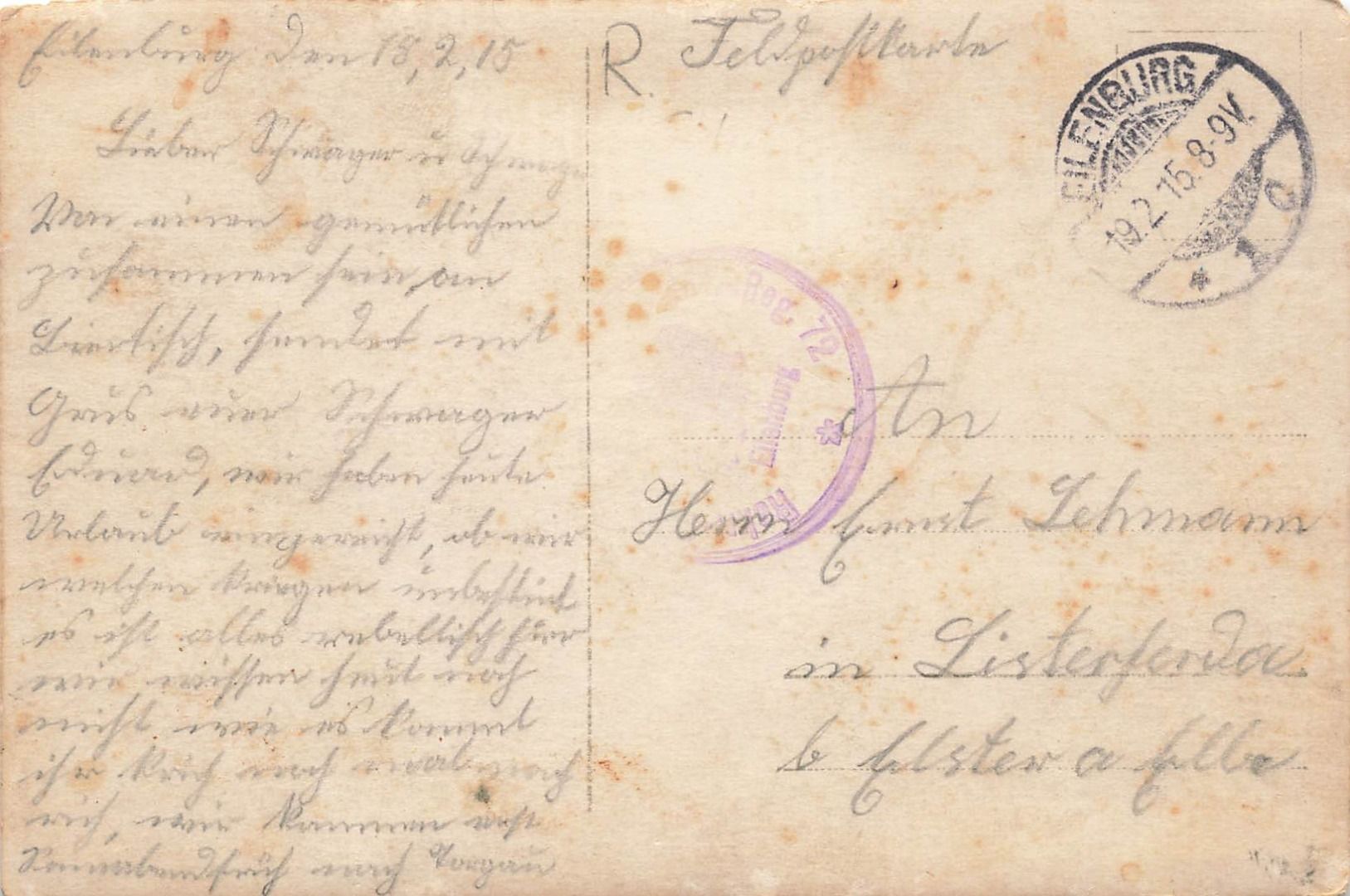 Rückseite: gelaufen 1915