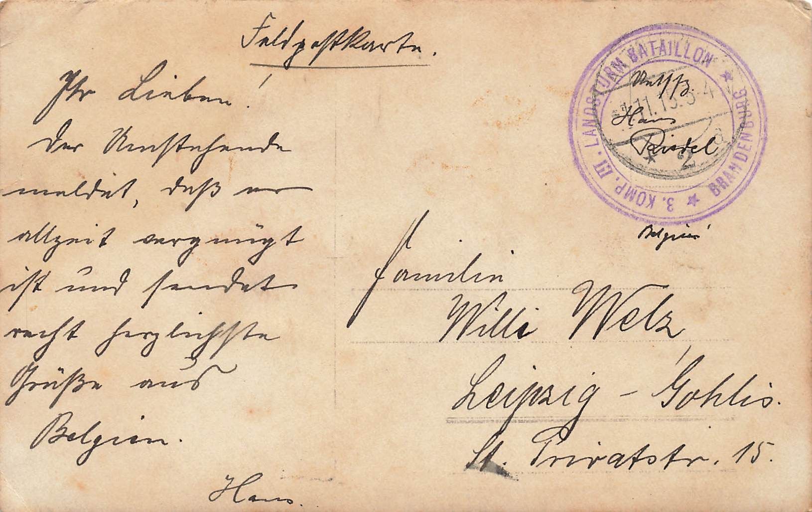 Fotokarte 1.WK Deutscher Landsturm Soldat mit Pistole Bajonett in Belgien