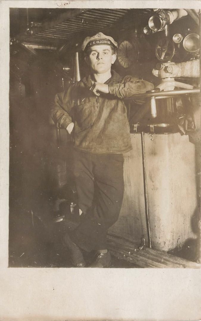Fotokarte 1.WK deutscher Matrose Mützenband S.M.S. Oldenburg Maschinenraum