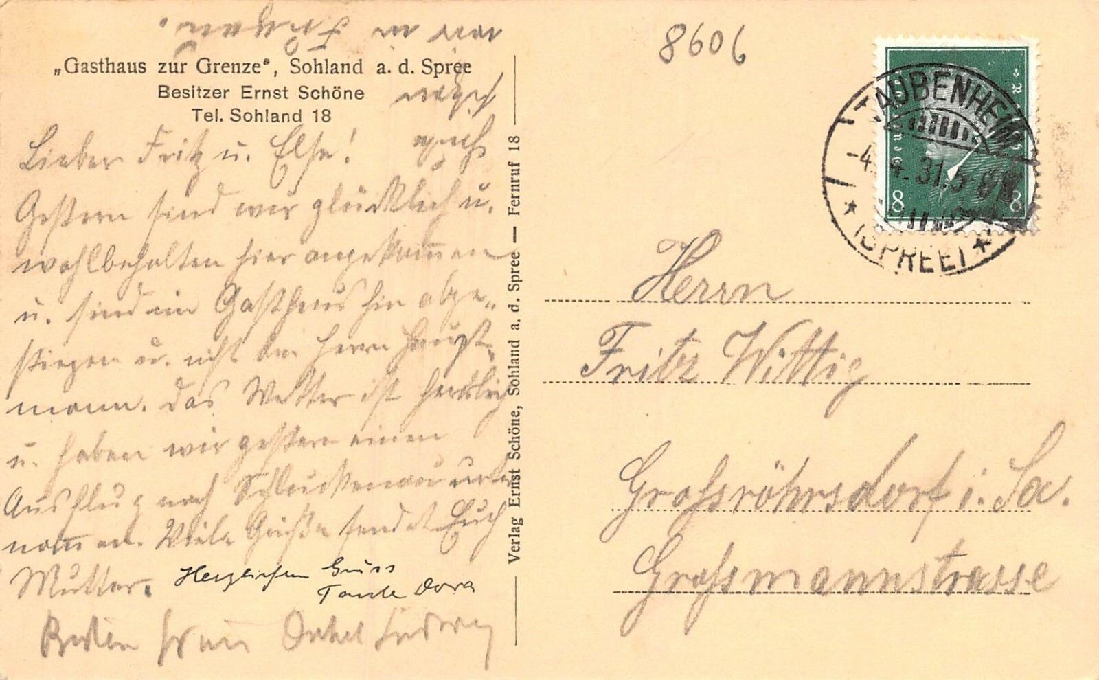 Rückseite: gelaufen 1931 von Taubenheim (Spree)