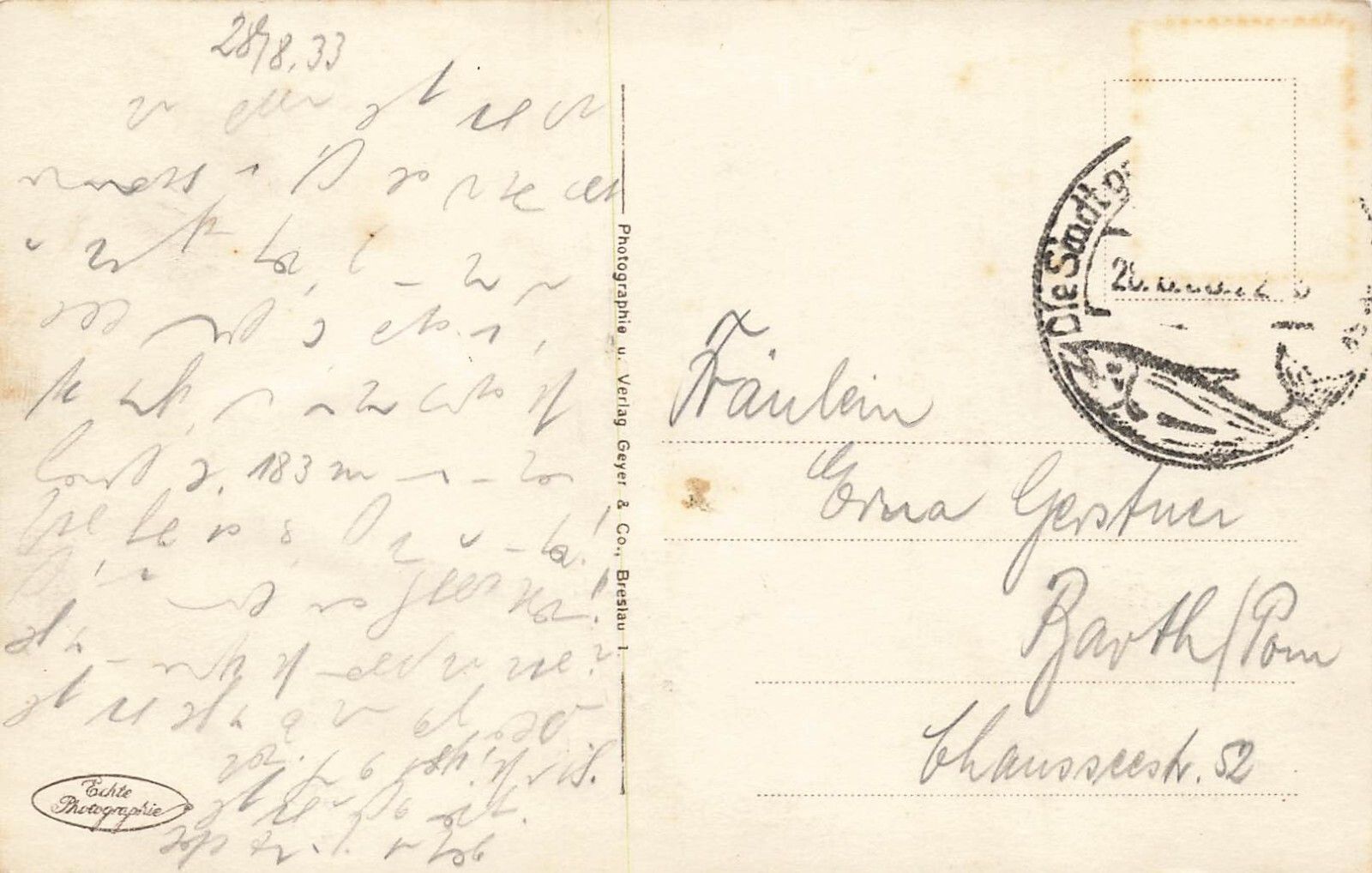Rückseite: gelaufen 1933