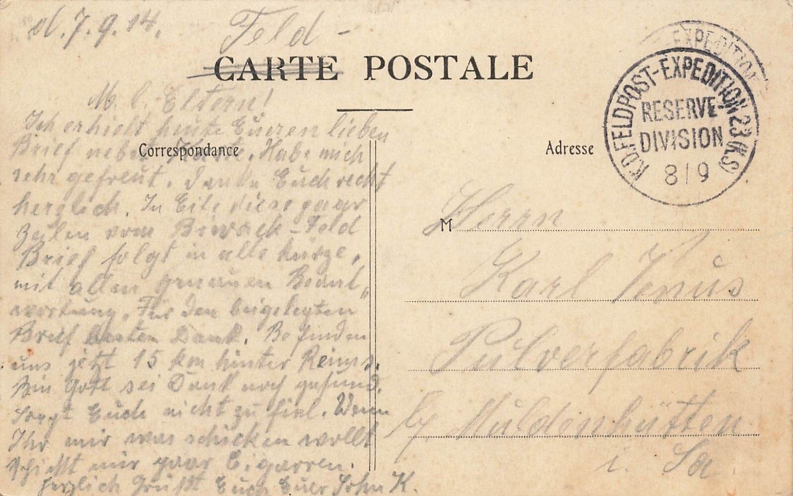 Original Postkarte Maße 9 x 14 cm Rückseite: gelaufen 1914 Zustand: gute Erhaltung