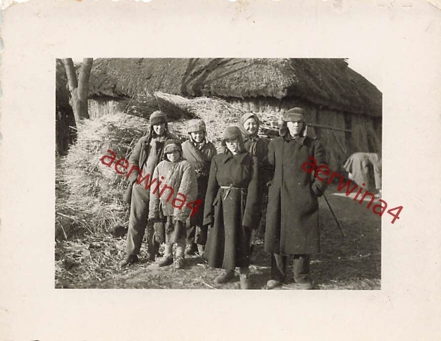 Gruppenfoto russ. Kinder und Männer Sowjet-Paradies bei Orel Russland Ostfront