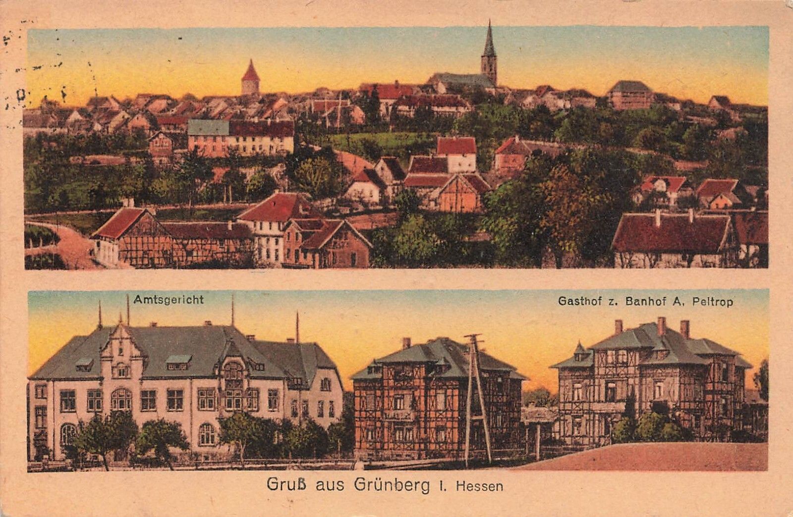 Gruss aus Grünberg mit Amtsgericht und Gasthof Hessen Postkarte AK 1919
