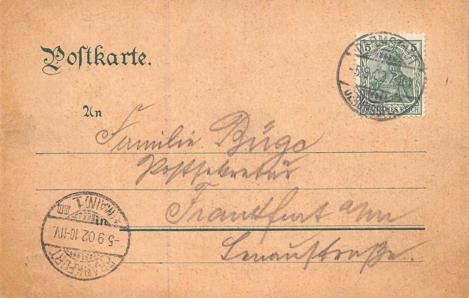 Original Postkarte Maße 9 x 14 cm Rückseite: gelaufen 1902 Zustand: gute Erhaltung