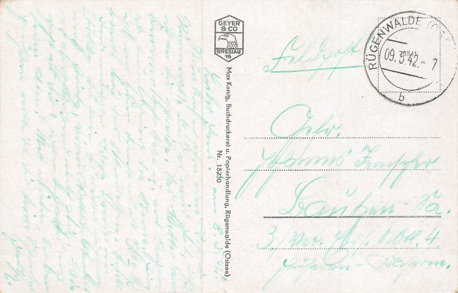 Original Postkarte Maße 9 x 14 cm Rückseite: gelaufen 1942 Zustand: gute Erhaltung Farbige Linie / Strich entstanden durch Scan (Rückseite)