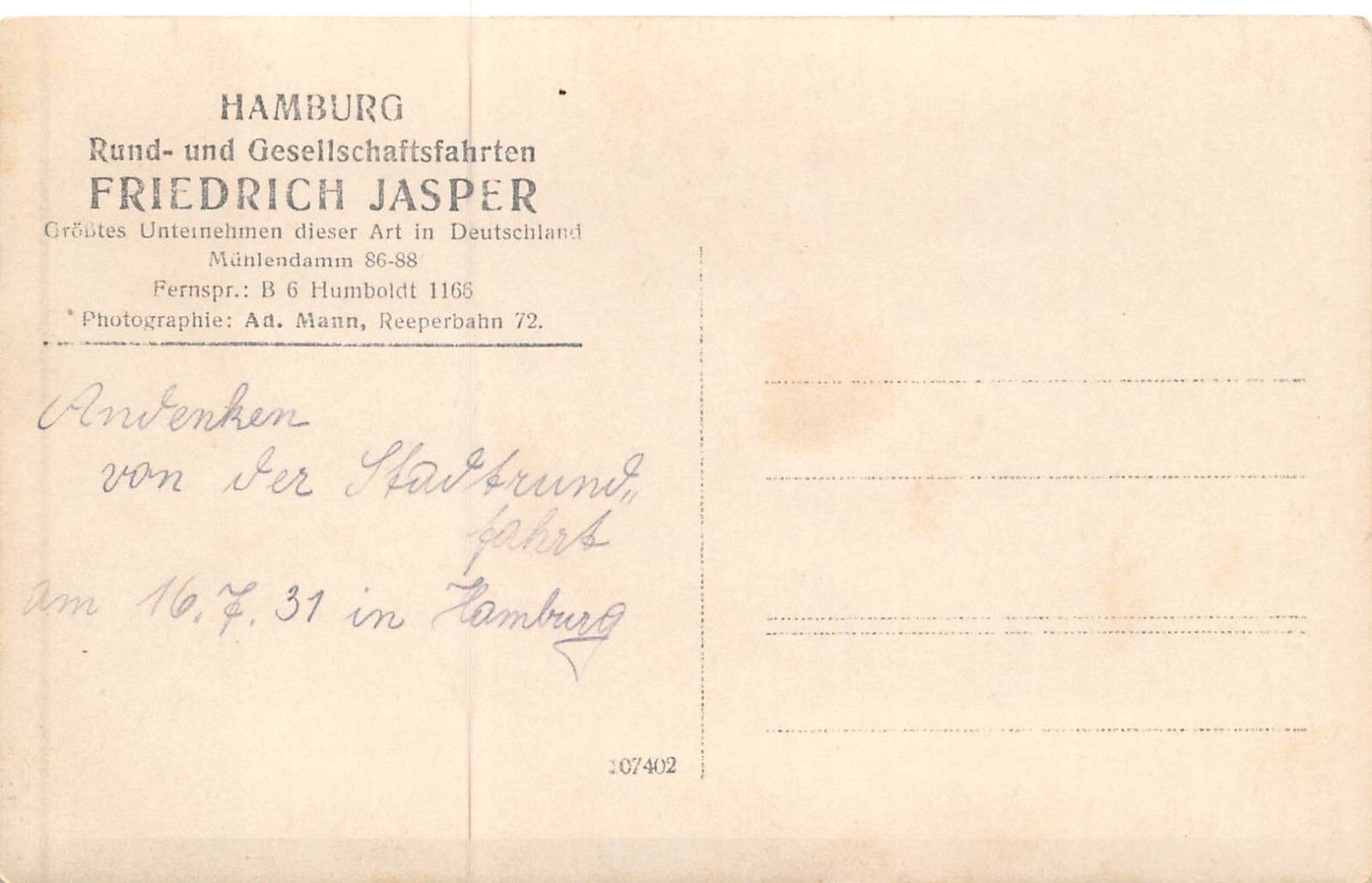 Hamburg Rund- und Gesellschaftsfahrten Friedrich Jasper Postkarte AK