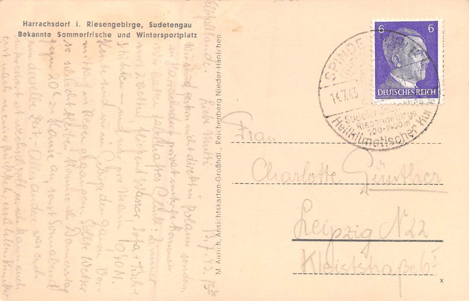Original Postkarte Maße 9 x 14 cm Rückseite: gelaufen 1943 Zustand: gute Erhaltung