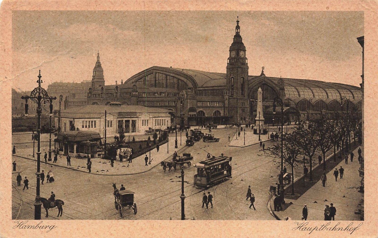 Hauptbahnhof mit Straßenbahn in Hamburg Postkarte AK 1929