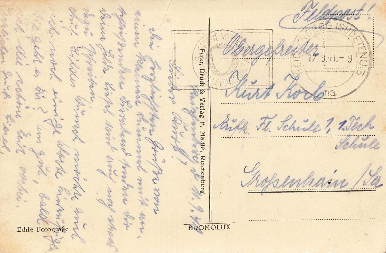 Rückseite: gelaufen 1941