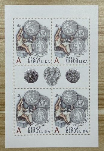 Joachimsthaler Block von 4 Briefmarken aus Tschechien von 2020. Diese Postfrischen Briefmarken zeigen Motive aus dem Münzwesen und der Numismatik. Hergestellt in der Tschechischen Republik ab 1993, sind sie echte Sammlerstücke und werden als Satz angeboten. Perfekt für Briefmarkensammler und Liebhaber von europäischen Briefmarken, insbesondere aus Tschechien und der ehemaligen Tschechoslowakei.