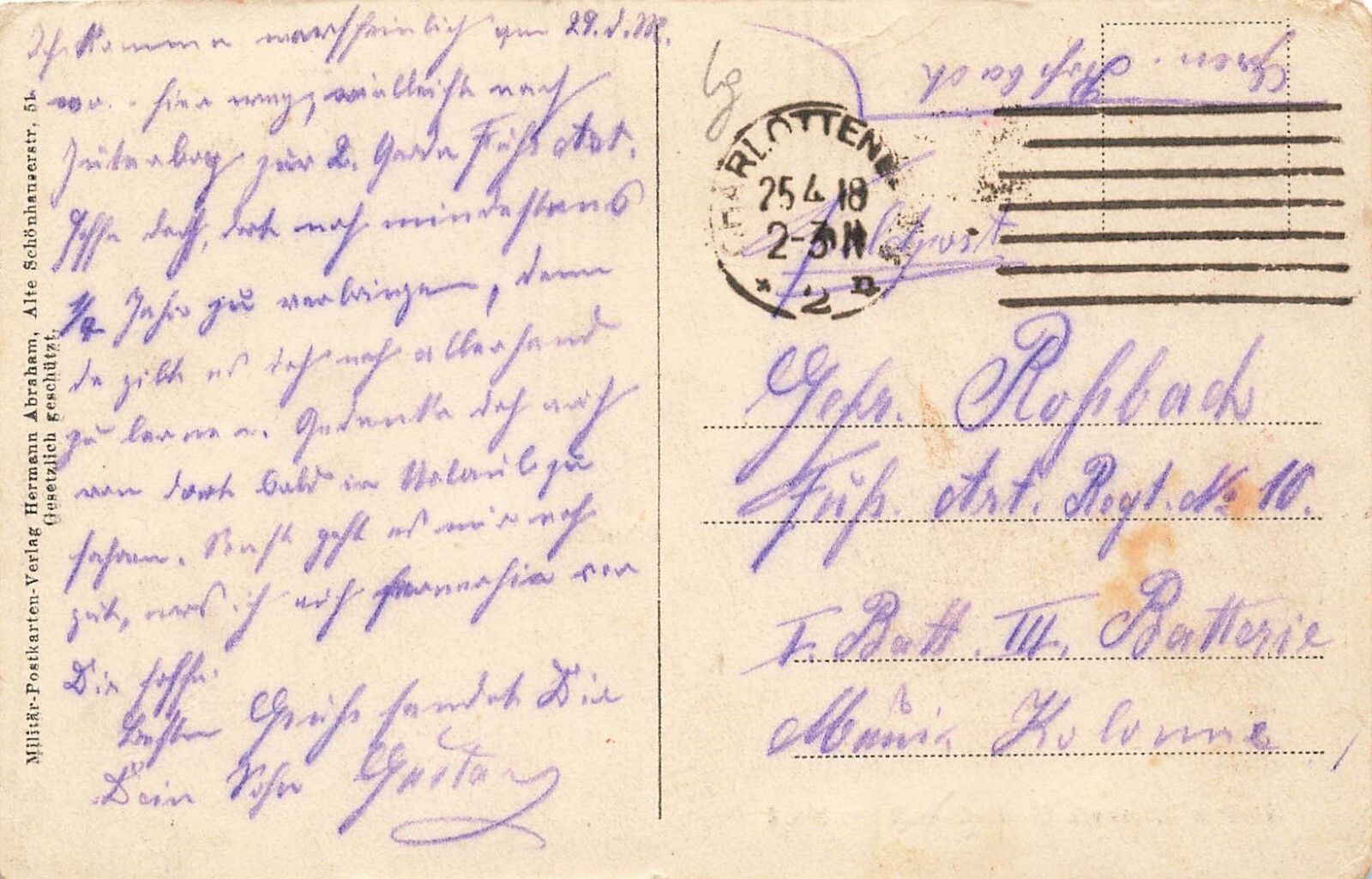 Original Postkarte Maße 9 x 14 cm Rückseite: gelaufen 1918 Zustand: leicht gebraucht
