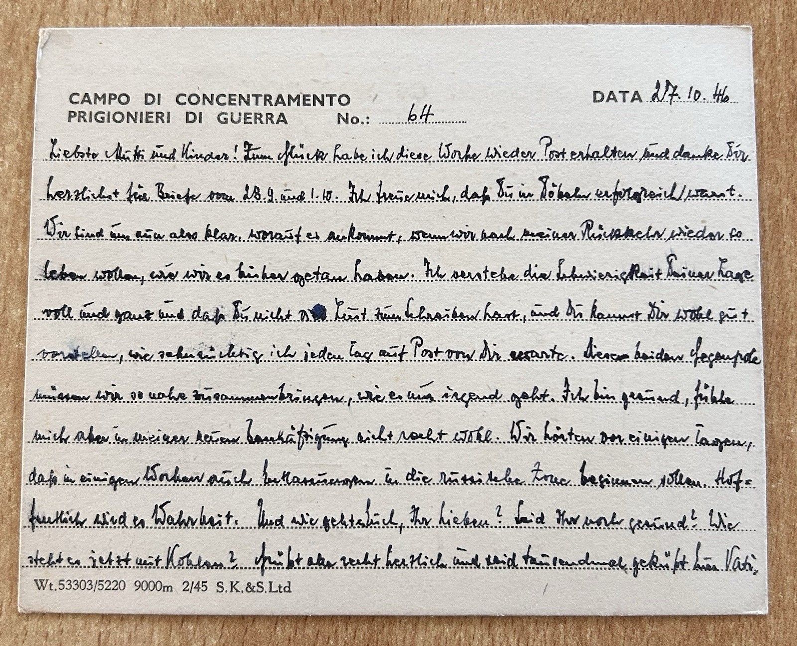 Kriegsgefangenenpost 1946 Großbritannien P.O.W. Camp 64 von England nach Deutschland Russische Zone 27.10.1946 Zustand: leicht gebraucht