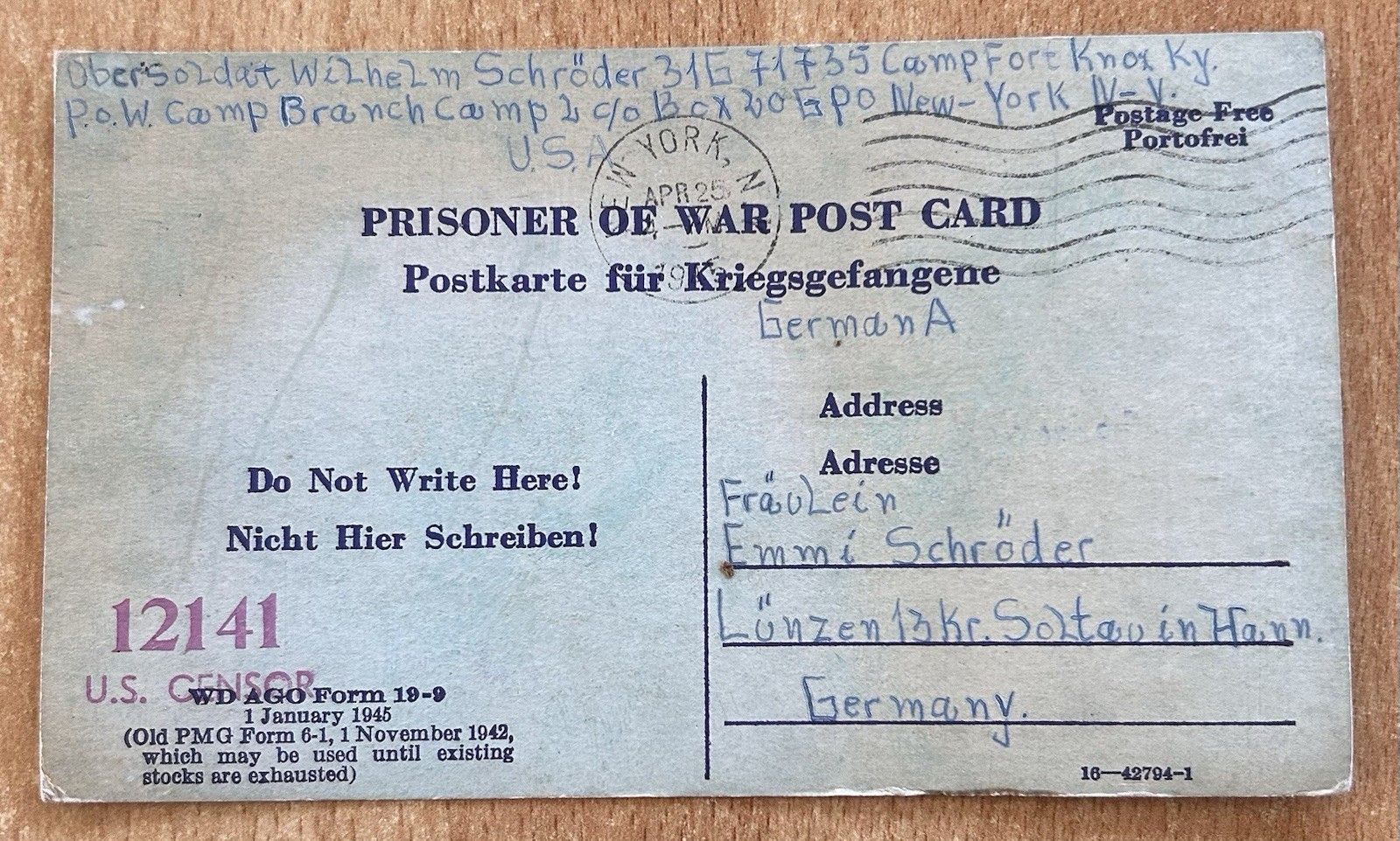 Kriegsgefangenenpost USA New York P.O.W. Camp Fort Knox Ky 1945