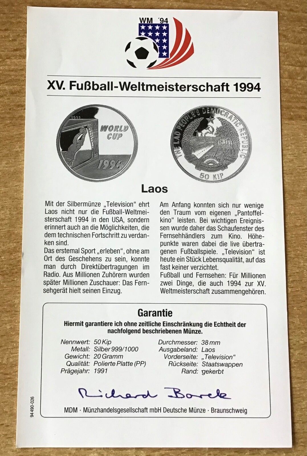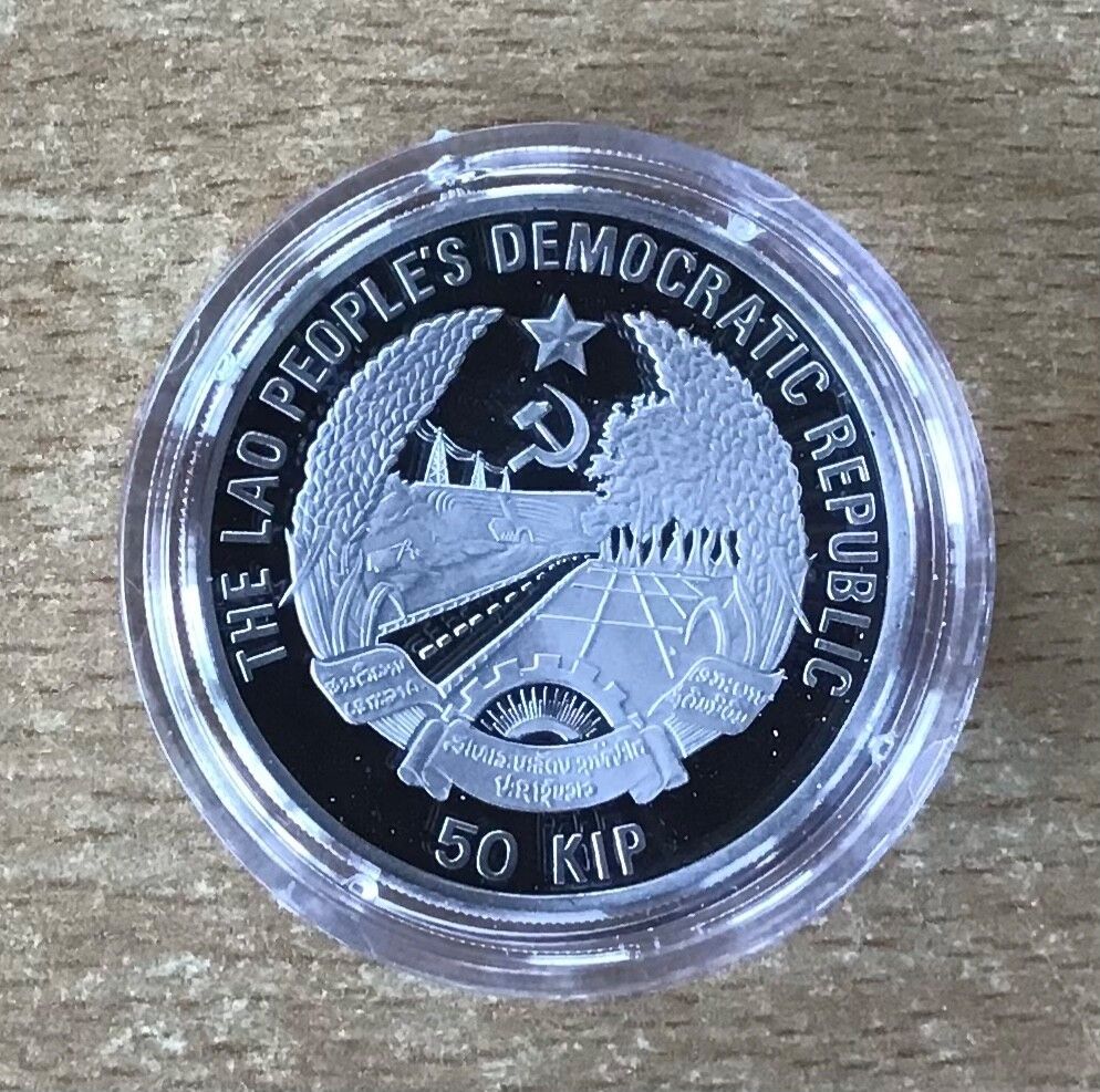 Laos 50 Kipp 1991 Television Fußball PP Silbermünze Mit Zertifikat