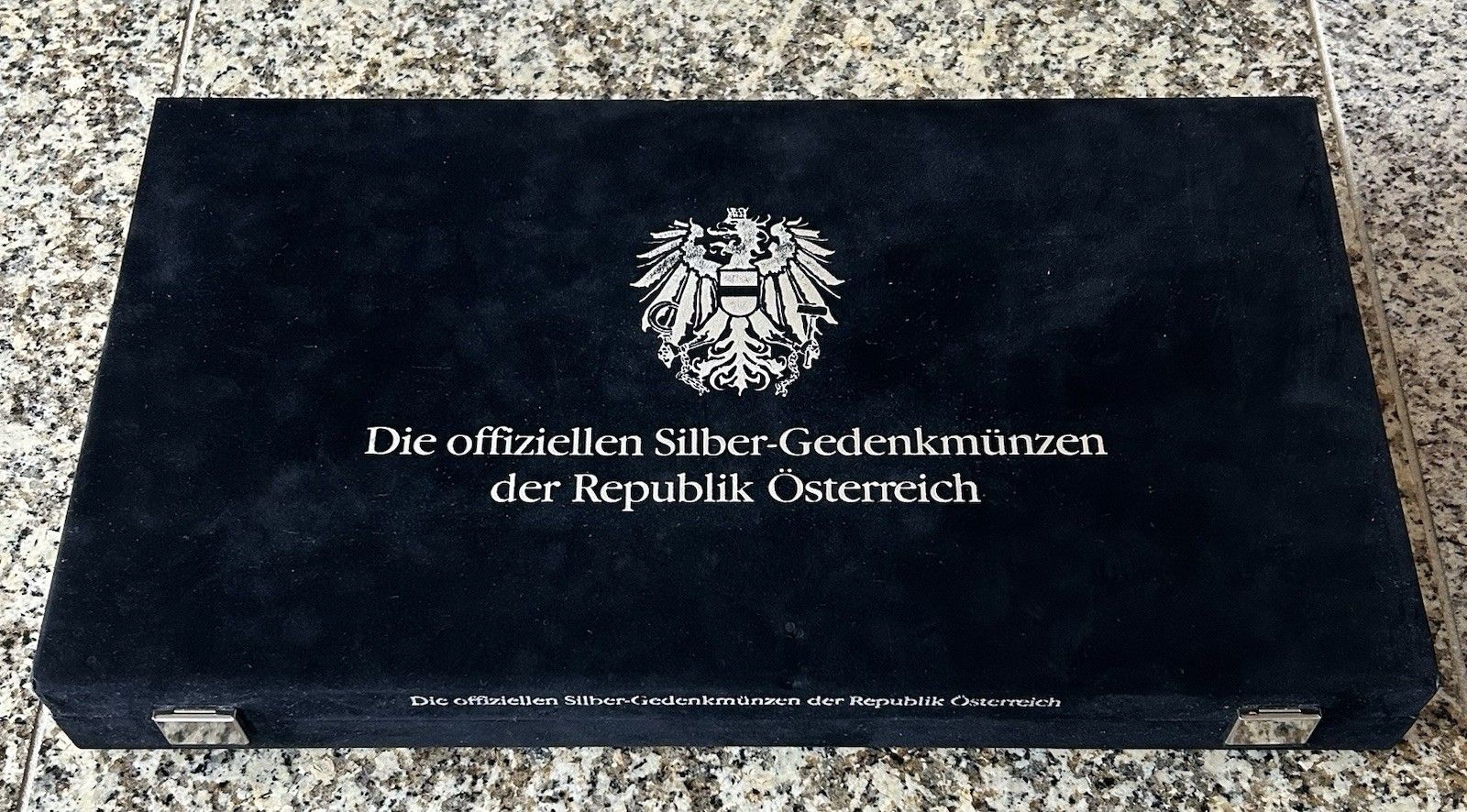 Leer Etui Münzbox für 24 Silber Münzen der Republik Österreich Zustand leicht gebraucht