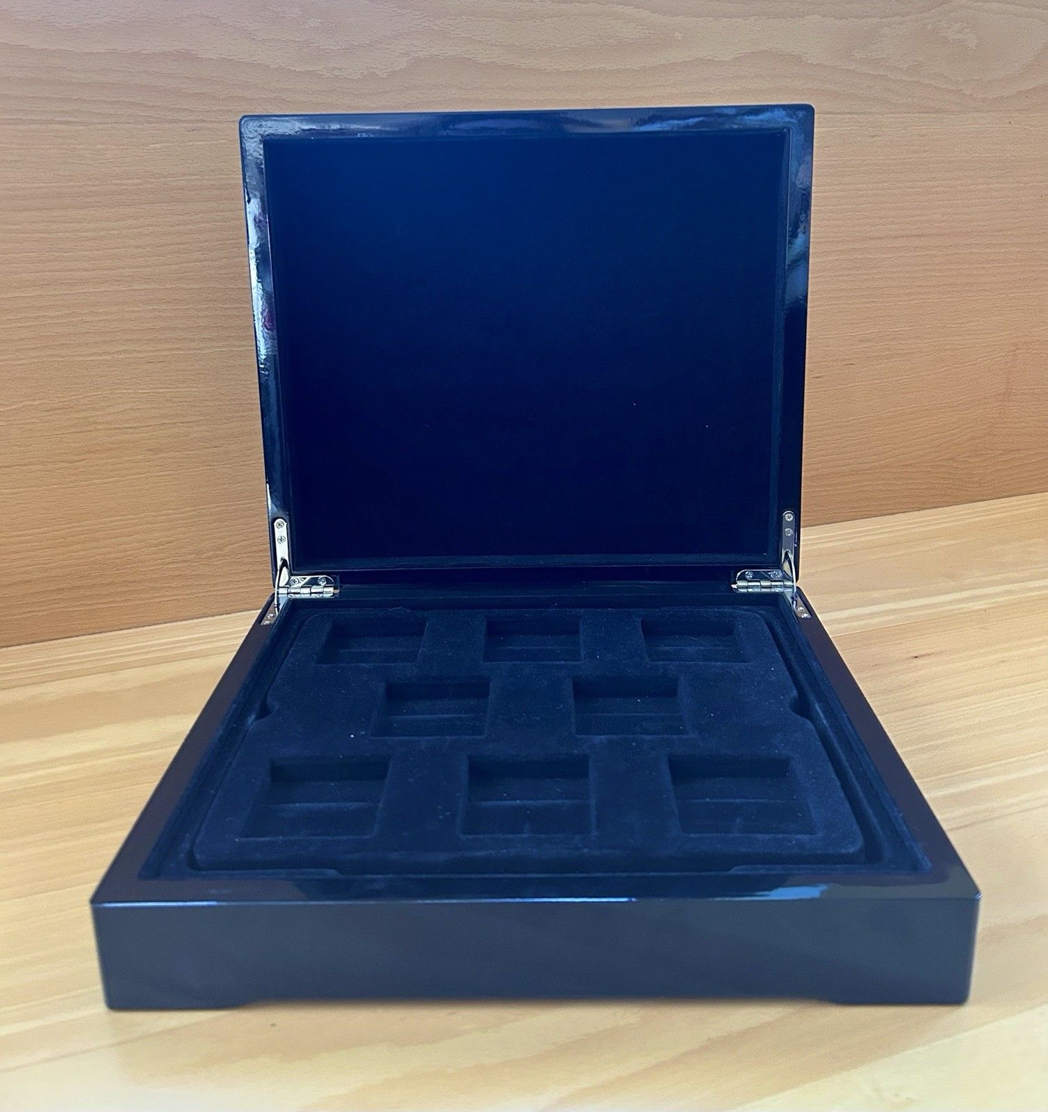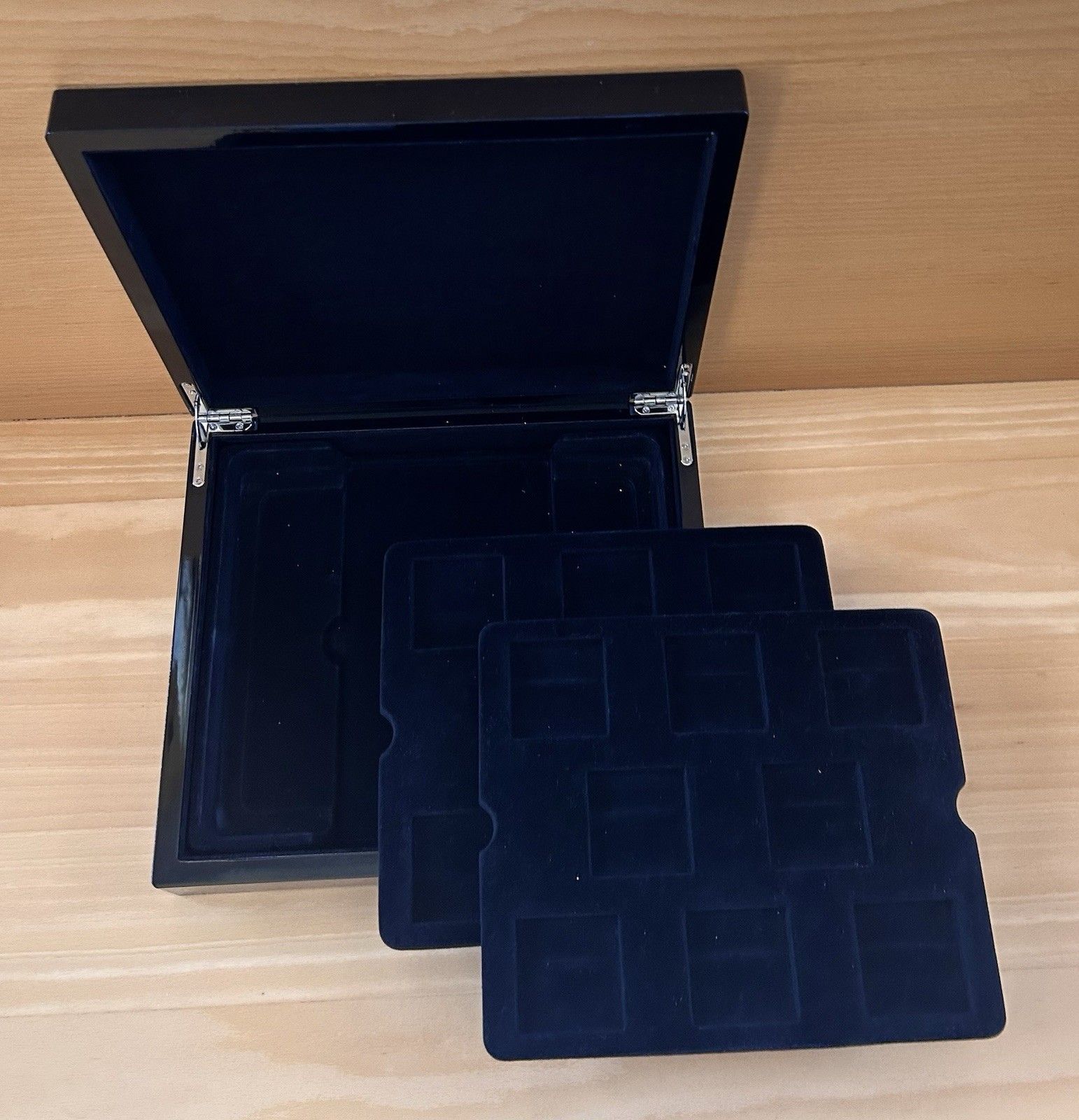 Leer Holz Etui Box für 16 Münzen Medaillen Münzbox Lackiert Schwarz Zustand leichter Kratzer, siehe Originalbilder , gebrauch Spuren