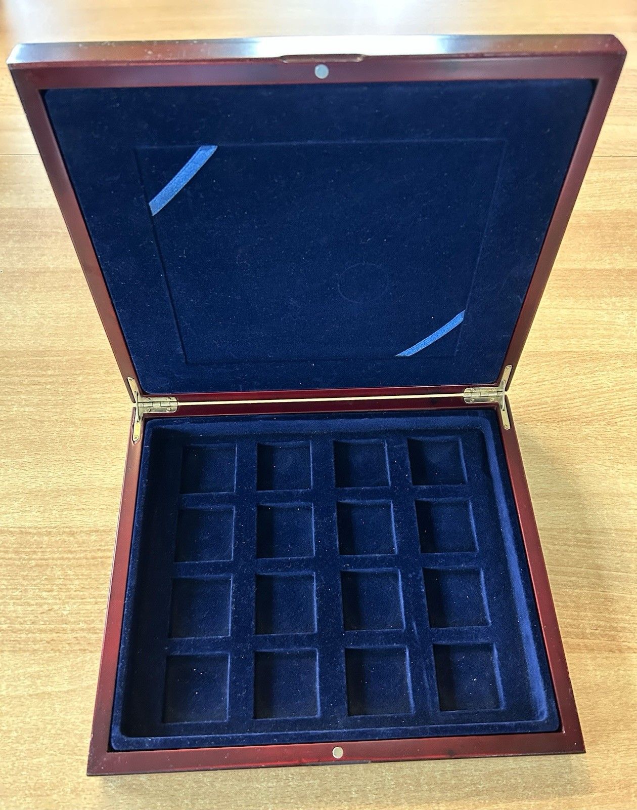 Leer Holz Etui Holzmünzbox für 16 Münzen Medaillen Zustand siehe Originalbilder , leicht gebrauch Spuren