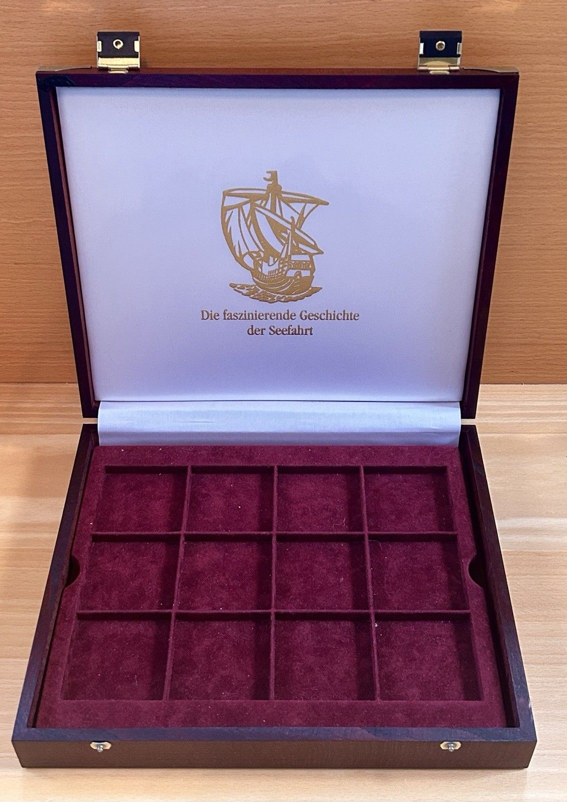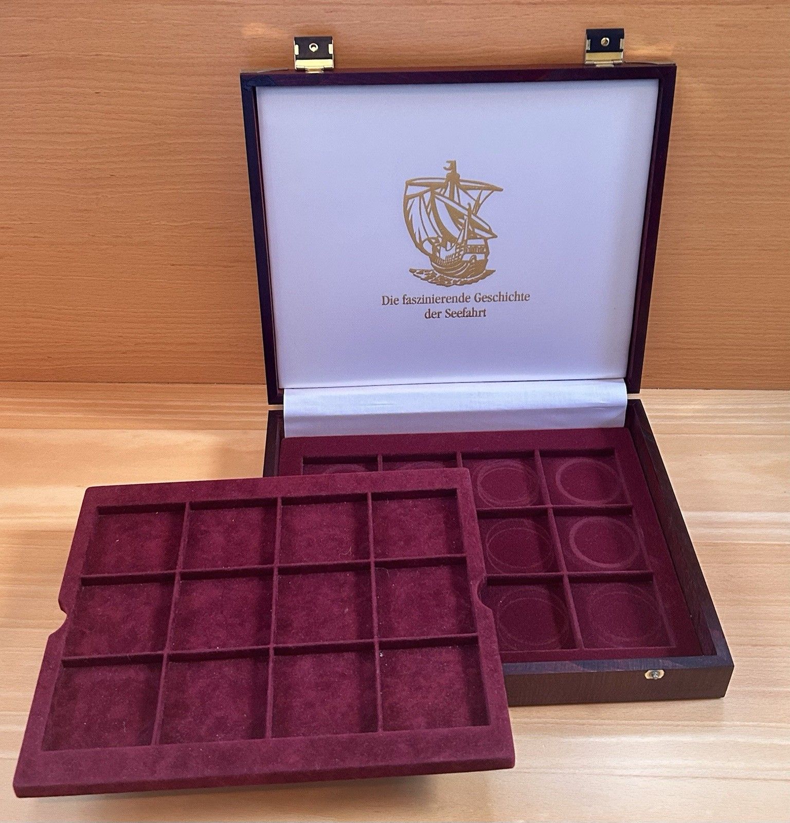 Leer Holz Etui Holzmünzbox Geschichte der Seefahrt für 24 Münzen Medaillen Zustand siehe Originalbilder , leicht gebrauch Spuren