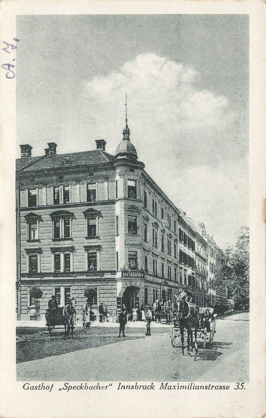 Maximilianstrasse mit Gasthof Speckbacher Innsbruck Österreich Postkarte AK