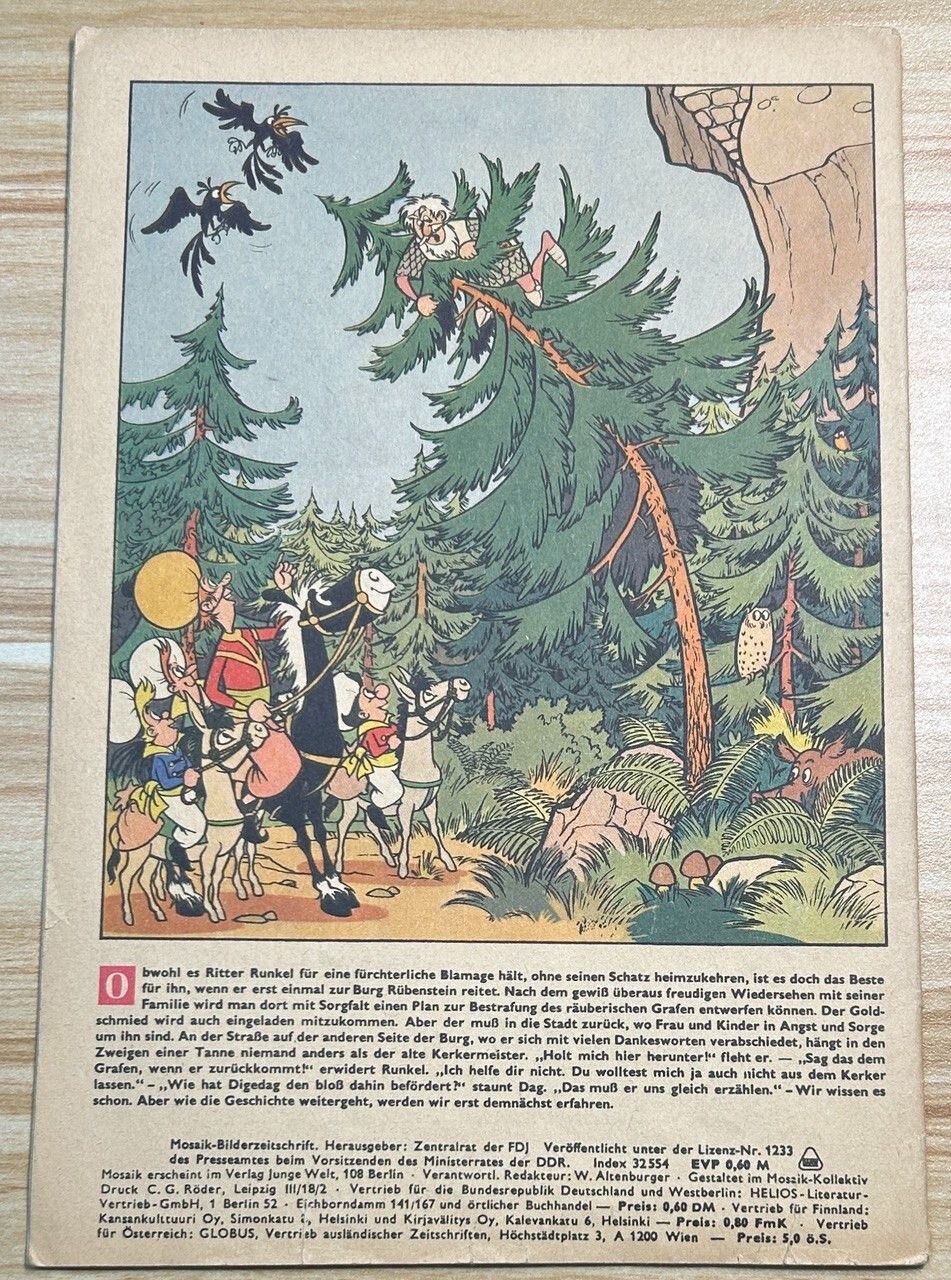 "Mosaik Hannes Hegen Digedags Nr 145 Ritter Runkels Heimkehr" ist ein Comicstrip aus der deutschen Comic-Tradition, gezeichnet und geschrieben von Hannes Hegen. Diese Ausgabe ist Teil der beliebten Serie und zeigt die Abenteuer der bekannten Figur Digedag. Sammler von europäischen Comics werden von diesem Stück begeistert sein, das eine authentische und einzigartige Ergänzung zu ihrer Sammlung darstellt. Perfekt für Comicliebhaber und Fans von Comicstrips, die auf der Suche nach seltenen und begehrten Stücken sind.