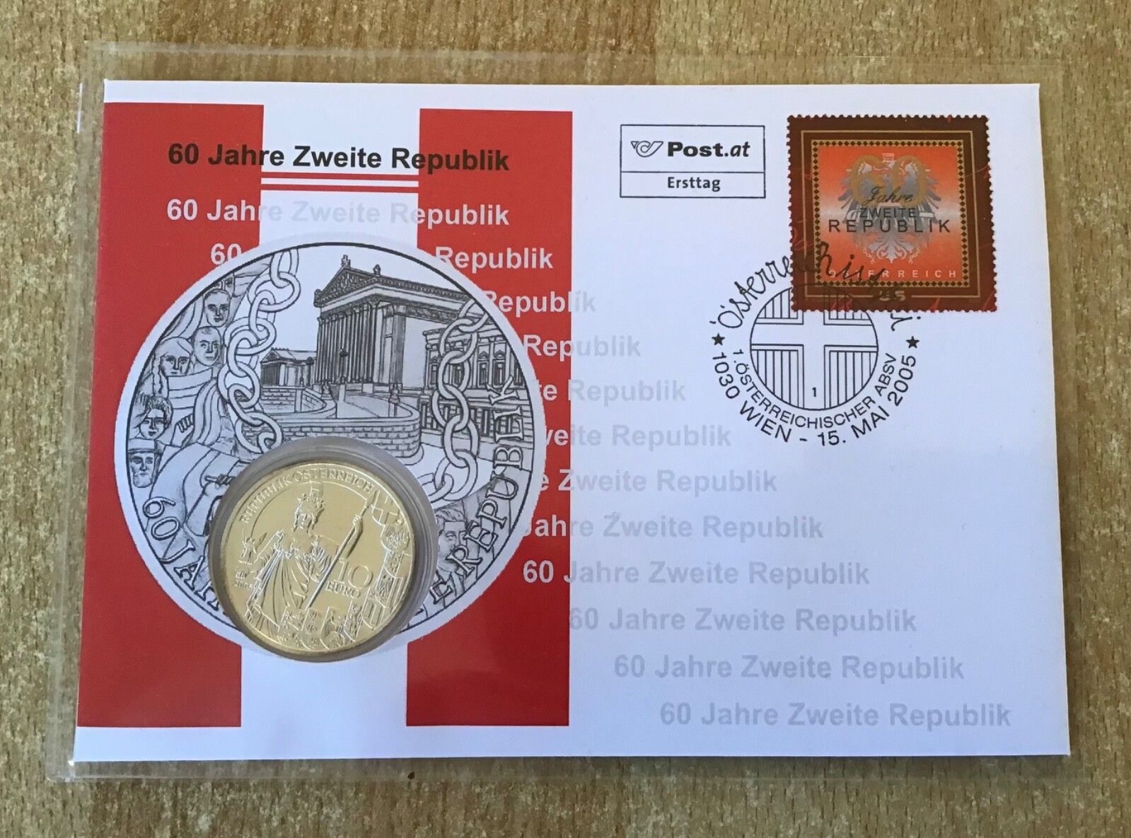 Numisbrief 60 Jahre Zweite Republik mit Österreich 10 Euro 2005 Silber Münze