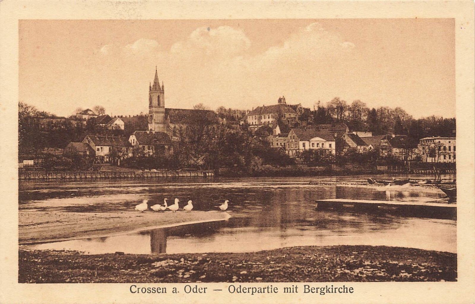 Oderpartie mit Bergkirche Crossen an der Oder Ostbrandenburg Postkarte AK