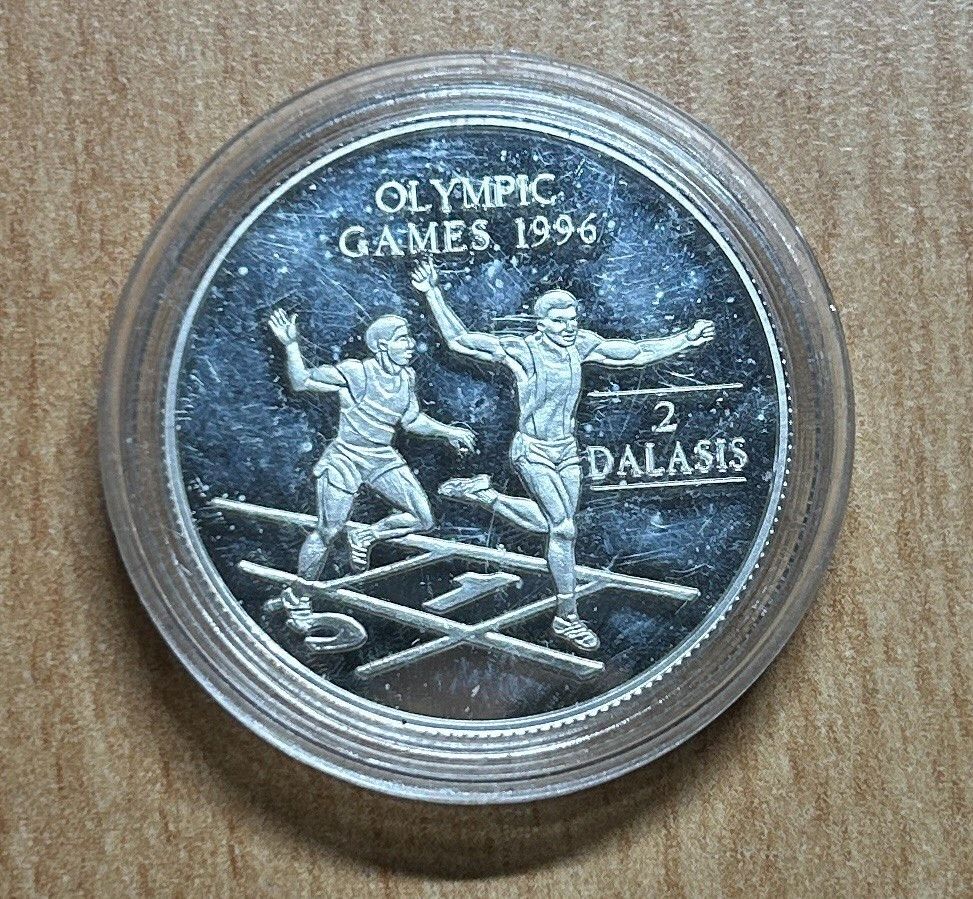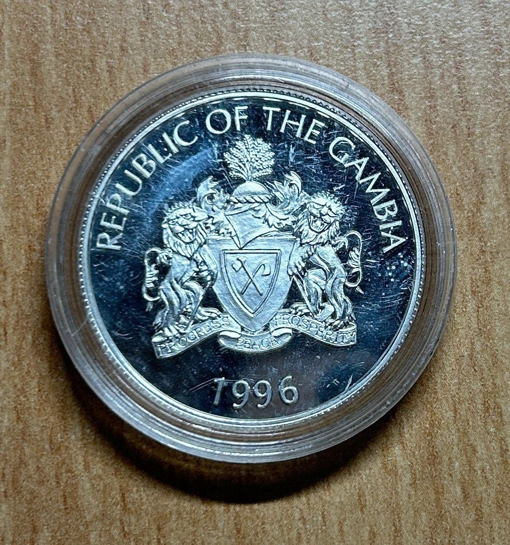 Olympische Sommerspiele in Atlanta Gambia 2 Dalasis 1996. Dieses Sammlerstück aus Gambia zeigt das Motiv von Olympia & Sport und ist ein seltenes Stück aus dem Jahr 1996. Ideal für Münzsammler und Liebhaber von internationalen Münzen.