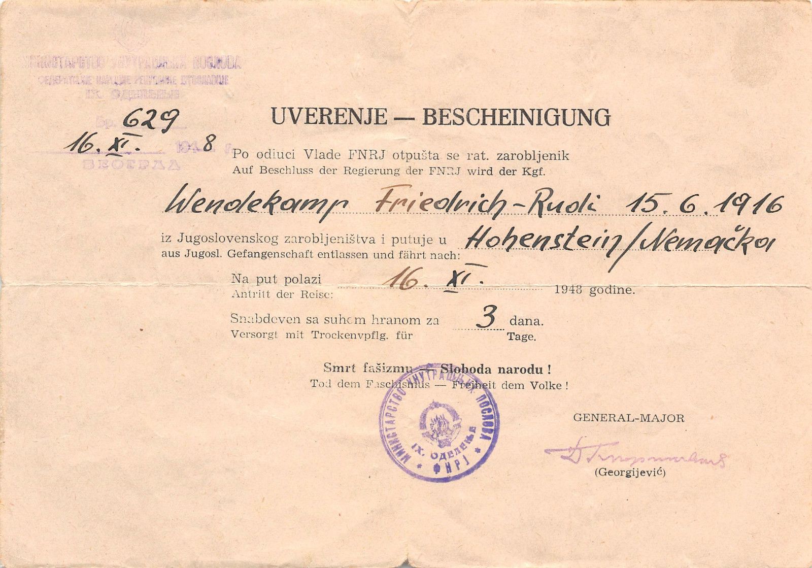 Original 2 Bescheinigung / Удостоверение Kriegsgefangene 1948