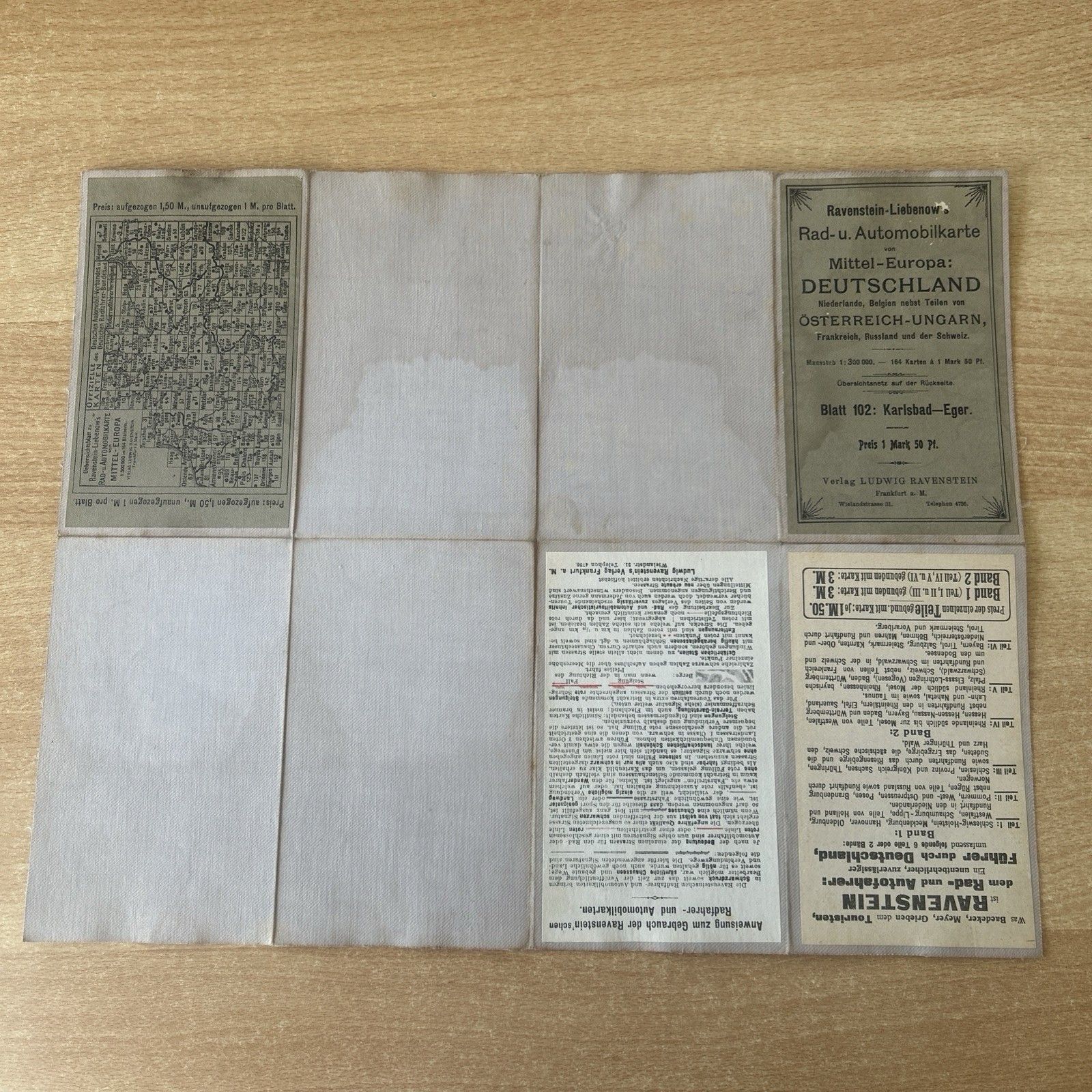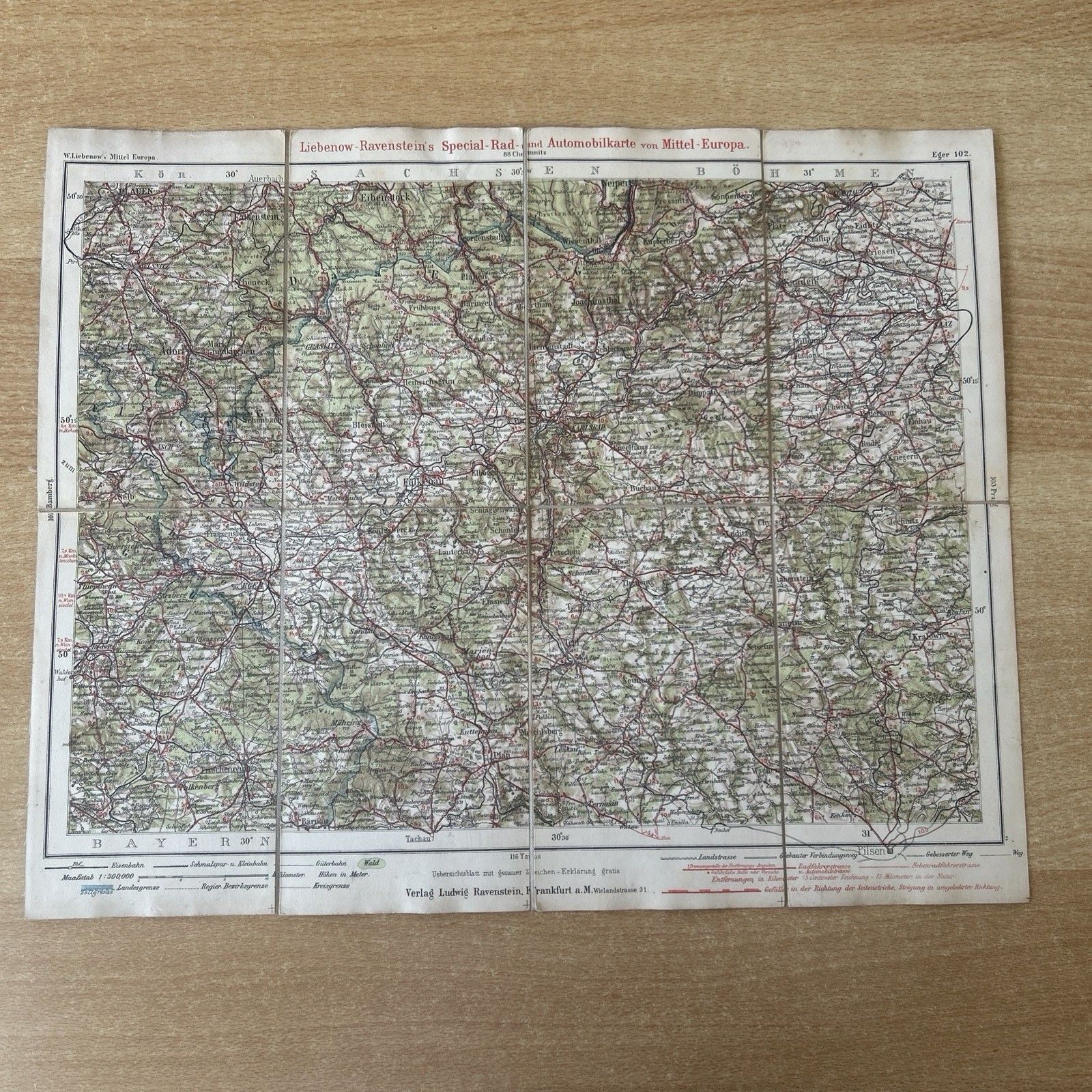 Rad Und Automobil Karte Deutschland, Mitteleuropa Um 1900 Verlag von Ludwig Rabenstein Frankfurt am Main. Zustand: leicht gebraucht